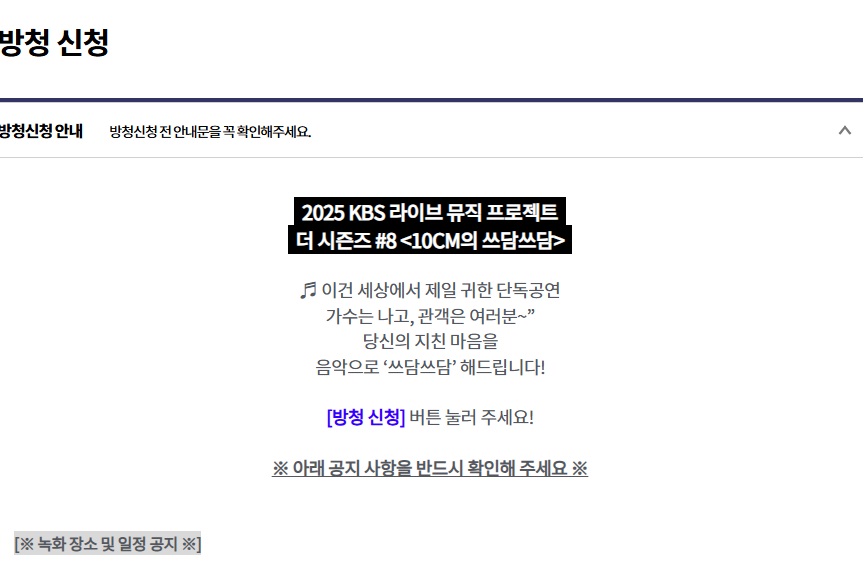 시청자 참여 부분에 보면 '방청 신청'이 있습니다.