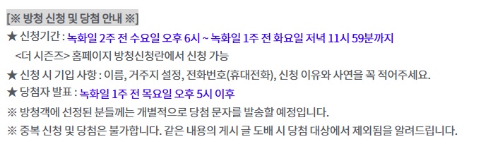 더 시즌즈 쓰담쓰담의 방청신청 방법은 간단합니다.